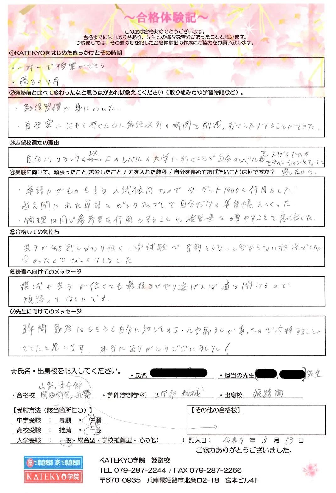 3年間勉強はもちろん自分に対してのエールや励ましがあったので合格することができたと思います。