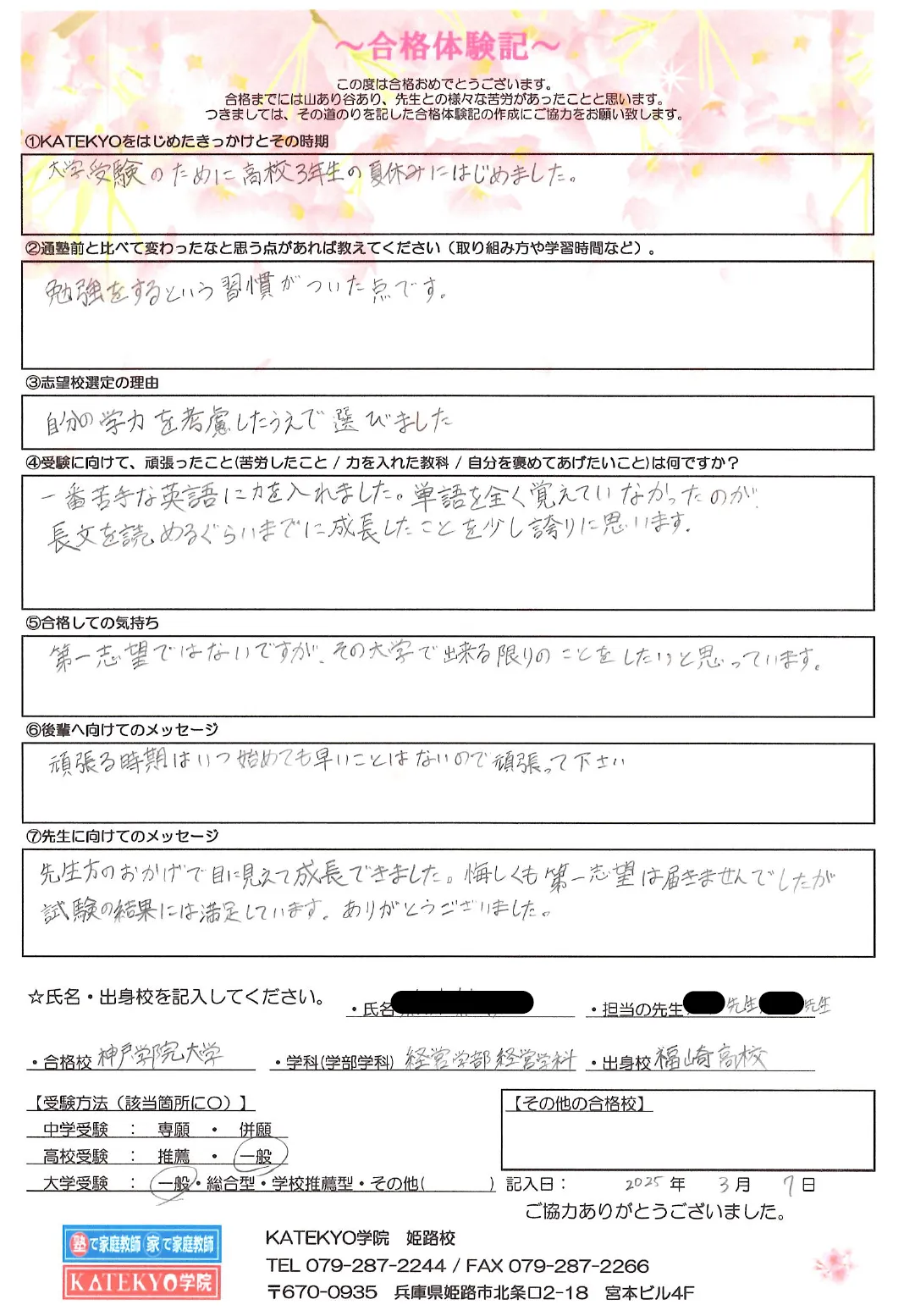 神戸学院大学 経営学部 経営学科 合格